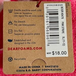 DEARFOAMS Microfiber Terry Memory Foam PINK STRIPED SCUFFS Womens XL (11-12) NWT