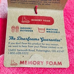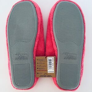 Dearfoams microfiber & terry scuffs/mules with memory foam insoles are the essence of casual comfort. These slippers feature a sturdy outsole for outdoor as well as indoor wearability. Machine washable. With vivid watermelon pink microfiber upper & keep-cool striped terry insole.