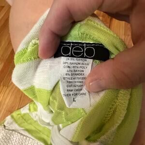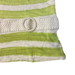 DEB Womens Y2K Top Faux Belt W/attached Faux Undershirt Cowl Neck Green Stripe L