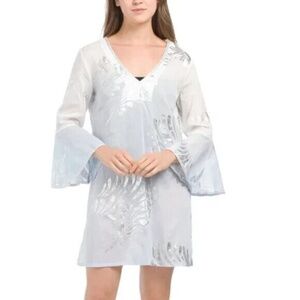 DEBBIE KATZ Mini Dress Beach Cover-up Blue Moira Silver Metallic Cotton Small