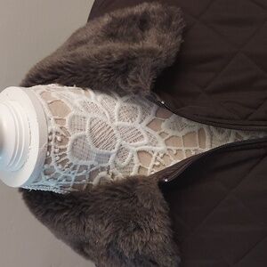 DEBBIE MORGAN Brown Quilted Zipper Front Sleeveless Vest in great condition
