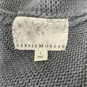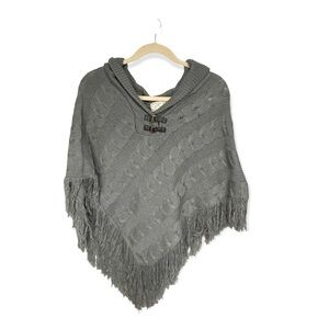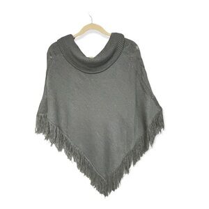 Debbie Morgan Grey Cowel Neck Cable Knit Sweater Fringed Poncho
