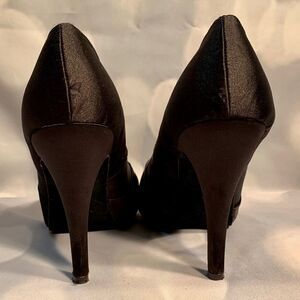 DEB BLACK SATIN OPEN TOE HIGH HEELS W RHINESTONES 4” heels Size 9 Great Condition Previously Loved
