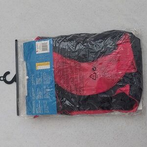Transform your child into a charming vampire with this black and red costume. Perfect for Halloween or dress-up parties. This costume is a unique one-piece jumpsuit. It has an attached cape, dickie, collar, and pants.