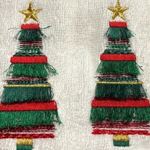 DEBORAH CONNOLLY NEW 2pc fringe Christmas tree hand towels -white/green
