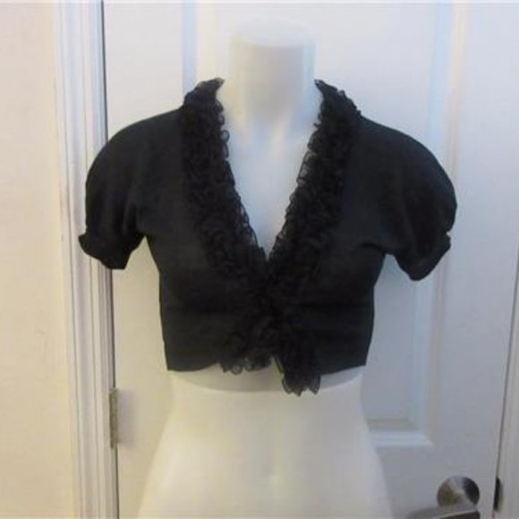 WOMENS DEBORAH LINDQUIST BLACK RUFFLE TRIM SHORT SLEEVE SHRUG SIZE S
