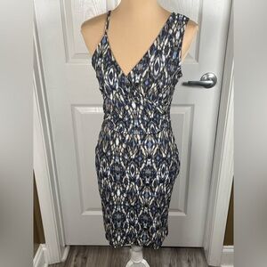 DEBORAH VIERECK ~Olive & Oak Blue Sheath V-Neck Midi Dress XS