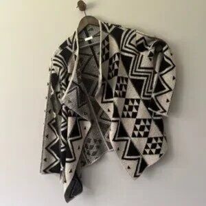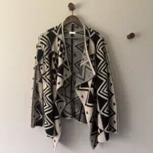 DEBUT AZTEC GEOMETRIC CARDIGAN SWEATER BLACK AND TAN SIZE SMALL MEDIUM GUC