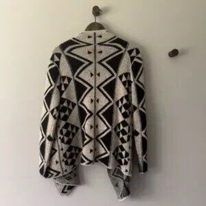 AZTEC PATTERN GEOMETRIC PRINT BLANKET STYLE OPEN FRONT CARDIGAN SWEATER