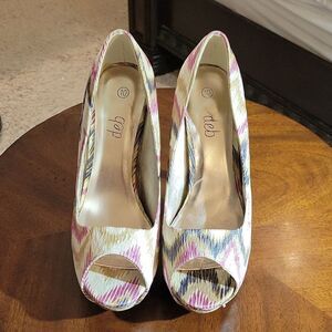 DEB WOMEN"S PEEP TOES HIGH HEEL STILETTOS PUMP SHOES SIZE 10 MULTI-COLOR LIKE DARK BLUE, GOLD, BURGUNDY AND MORE MADE WITH ALL MANMADE MATERIALS THIS ITEMS IS PRE-OWNED EXCELLENT CONDITION YOU MIGHT MISTAKE FOR NEW CHECK THE PICTURES