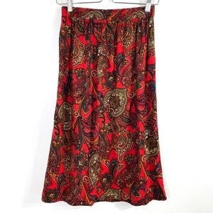 DECADE design 70s Vintage Paisley Print A-line Midi Skirt in Red