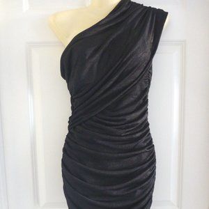 Express your unique style with this stunning one-shoulder black dress from DECAPOLIS.