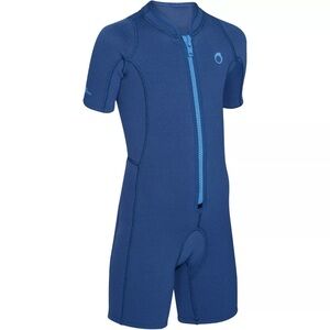 DECATHLON Neoprene Shorty Navy Blue Snorkeling, Scuba, Swimming, Diving Suit no size tag approx 12-14 kids please see pictures for measurements.