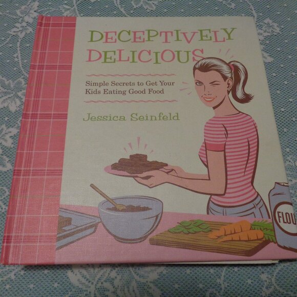 BOOK DECEPTIVELY DELICIOUS SIMPLE SECRETS TO GET YOUR KIDS EATINGS GOOD FOOD JESSICA SEINFIELD. HARDBOUND. PUBLISHED BY COLLINS. IT HAS 204 PAGES PLUS A FEW EXTRA. WITH SOME WEAR. BOOK FOR YOUR KIDS TO EAT. 3RD GROUP. # 1010. THANKS