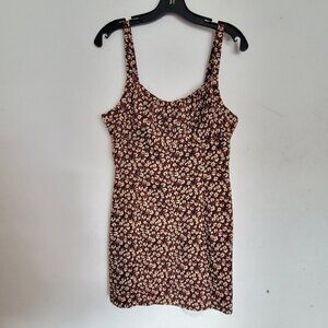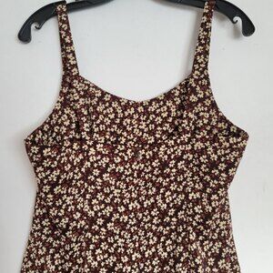 DECO Brown Cream Tan Floral Sleeveless Tank Mini Sun Summer Sheath Dress Small