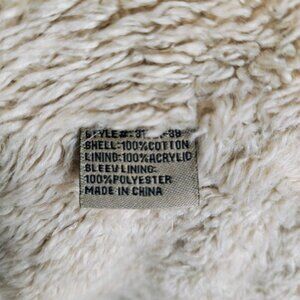 Material: A corduroy outer shell, made of cotton, and acrylic sherpa lining for warmth.