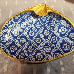 DECOUPAGE CLAM SHELL DECOUPAGE BLUE PRINT ON A CLAM SHELL TRINKET DISH
