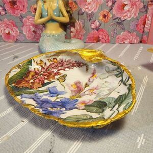 DECOUPAGE CLAM SHELL DECOUPAGE FLOWERS 💐 ON A CLAM SHELL TRINKET DISH