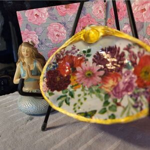 DECOUPAGE CLAM SHELL DECOUPAGE FLOWERS ON A CLAM SHELL TRINKET DISH