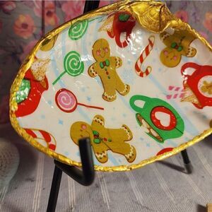 DECOUPAGE CLAM SHELL DECOUPAGE GINGERBREAD MAN ON A CLAM SHELL TRINKET DISH