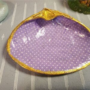 DECOUPAGE CLAM SHELL DECOUPAGE PURPLE POLKA DOTS ON A CLAM SHELL TRINKET DISH
