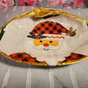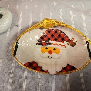 DECOUPAGE CLAM SHELL DECOUPAGE SANTA CLAUS 🧑🎄 ON A CLAM SHELL TRINKET DISH