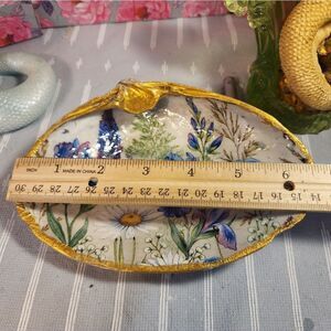 DECOUPAGE CLAM SHELL DECOUPAGE FLOWERS TRINKET DISH