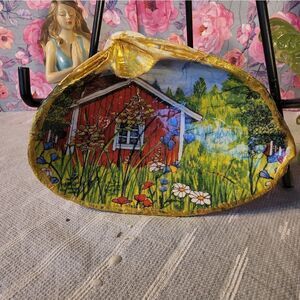 DECOUPAGE CLAM SHELL DECOUPAGE RED BARN TRINKET DISH