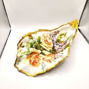 All my decoupage shells are made by me. This shell is called an oyster shell. Every shell has its characteristics. These oyster shells were homes to a living creature once. Possibly have bumps and grooves from growth.