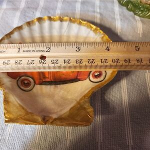 All my decoupage shells are made by me. This shell is called a Scalloped shell. Every shell has its own charastics. These shells were homes to a living creature once. Possibly have bumps and grooves from growth. The bottom edge might not be straight. Due to how they are opened. They are not manufactured shells. They could be not a perfect circle. They are nature, unique and different.