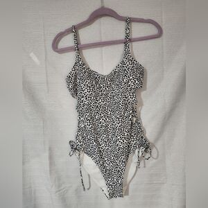 Stylish and chic, this black and white one-piece swimsuit is perfect for a day at the beach or pool. Featuring a trendy cut-out design, it offers both comfort and style.