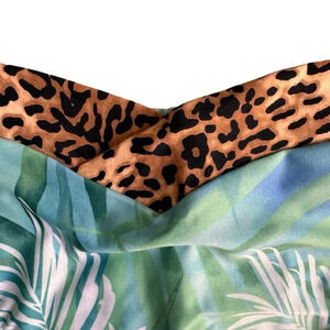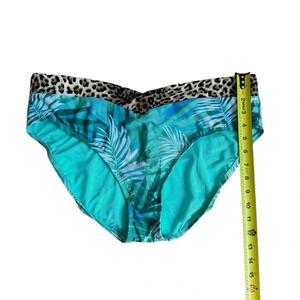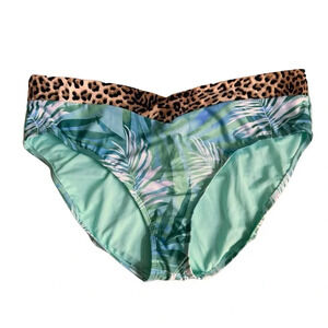 DECREE Swim Bikini Bottom Size 1X Palm Blue Green Animal Print mid-rise cheeky