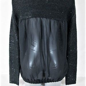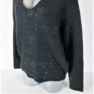 #100E1 DECREE WOMEN'S Medium LONG SLEEVE BLACK SEQUINS SHEER BACK V NECK SWEATER.