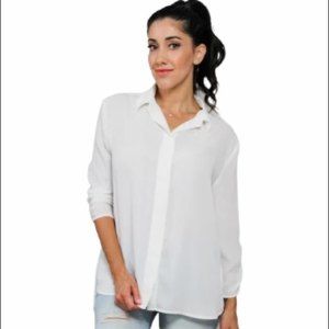 DECREE Womens Sheer White Staple Button Down Flowy Blouse Small