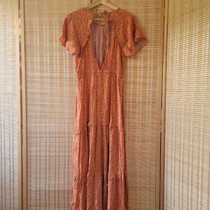 DEE ELLY Tiered Midi Orange Floral Spring and Summer Dress
