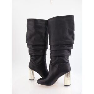 DEE OCLEPPO Bethany Slouchy Leather Knee Boots Black Size 9 Gold High Heel