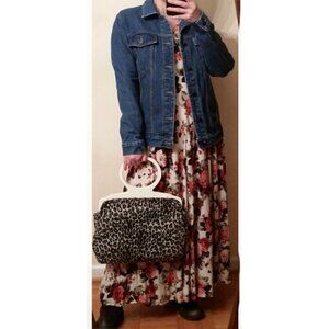 Retro style, animal cheetah print transforming handbag that come with interchangeable covers. Magnetic closure.