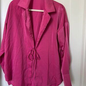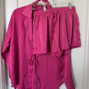 DEEP SELF Hot Pink Tie-Front Pajama Set- MEDIUM
