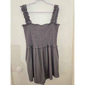 Keywords: DEEPSELF romper, smocked romper, ruffle strap romper, sleeveless jumpsuit, casual romper, summer romper, women's romper, gray romper, jumpsuit romper, beach romper, vacation romper, XL romper, new with tags, ruffle detail, smocked bodice
