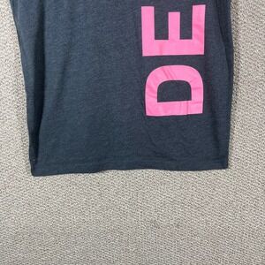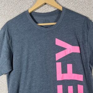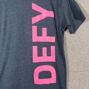 DEFY Shirt Mens Size Medium Gray Pink Spell Out Short Sleeves Casual Crew Neck