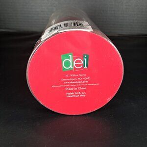 Specifications: Material. Glass and crystal (clear). Shape: Pilsner. Red, black, white and gold color. 8 5/8 inches tall. Capacities 24 fluid ounces. Brand is DEI. Manufacturers: DEI, Dennis East International. Hand wash only. Condition: Comes in original plastic cylinder. Container shows a little wear. See pics. The pilsner is in nice pre-owned condition with no damage. Non-smoking pet free home.