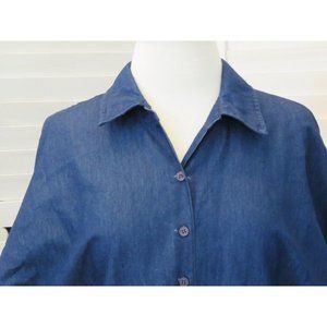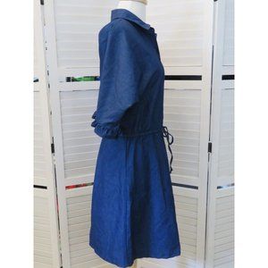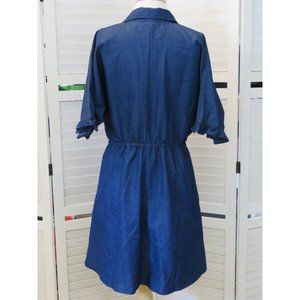 DEJA BLEU Chambray Shirt Dress Medium (M) Dolman Sleeves Drawstring Waist Blue