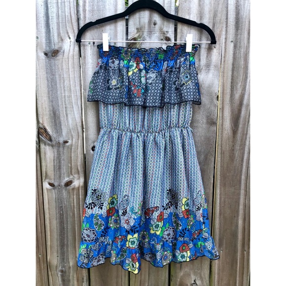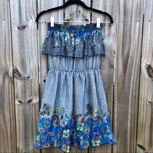 🌈🖤DEJAVU STRAPLESS COLORFUL FLORAL DESIGN PATTERN DRESS🖤🌈