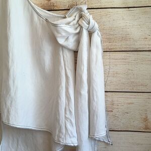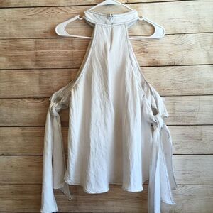 EXCELLENT CONDITION DEJA VU COLD SHOULDER BOHO TOP IN CREAM SIZE LARGE TIE SLEEVES BACK ZIP 89% RAYON 11% NYLON