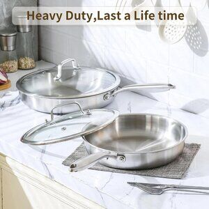 DELARLO Tri-Ply 12" Stainless Steel FRYING PAN with Glass Lid 18/8 NIB