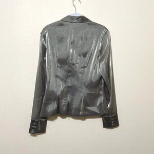 Features: Lined, Collared, Wrap Style, Metallic, Cuffed Sleeves