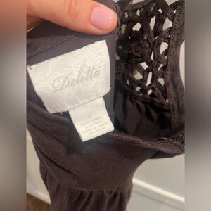 DELETTA Anthropologie Crochet Neckline Tie Back Halter Sun Dress size Small