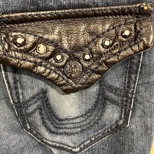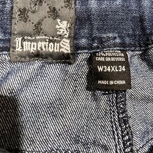 DELF TRADING INC. Imperious Faux Leather Studded Denim Jeans 34X34 Rocker Grunge