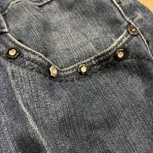 DELF TRADING INC. Imperious Faux Leather Studded Pocket Denim Jeans
