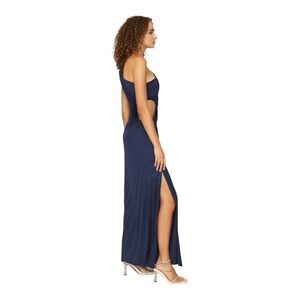 DELFI Collective Solie One Shoulder Cutout Maxi Dress Evening Gown Navy Medium
